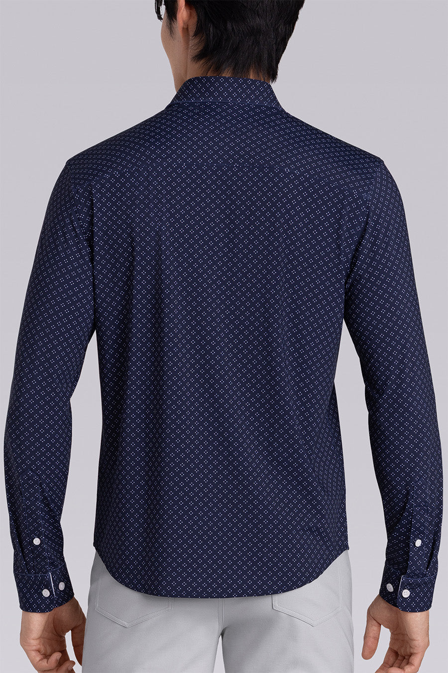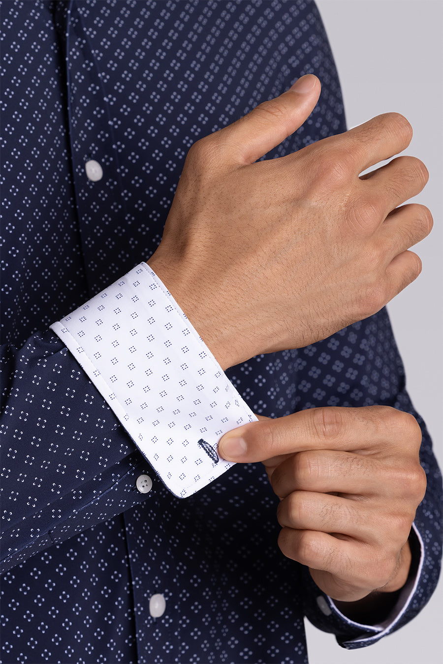 • Contrast Print Inside the Collar Stand and Cuff with Geometric Print  in White & Navy Color