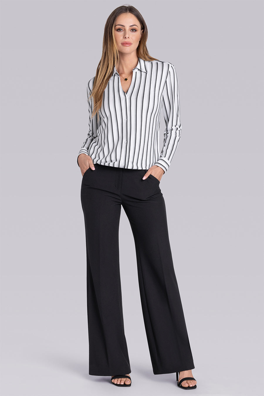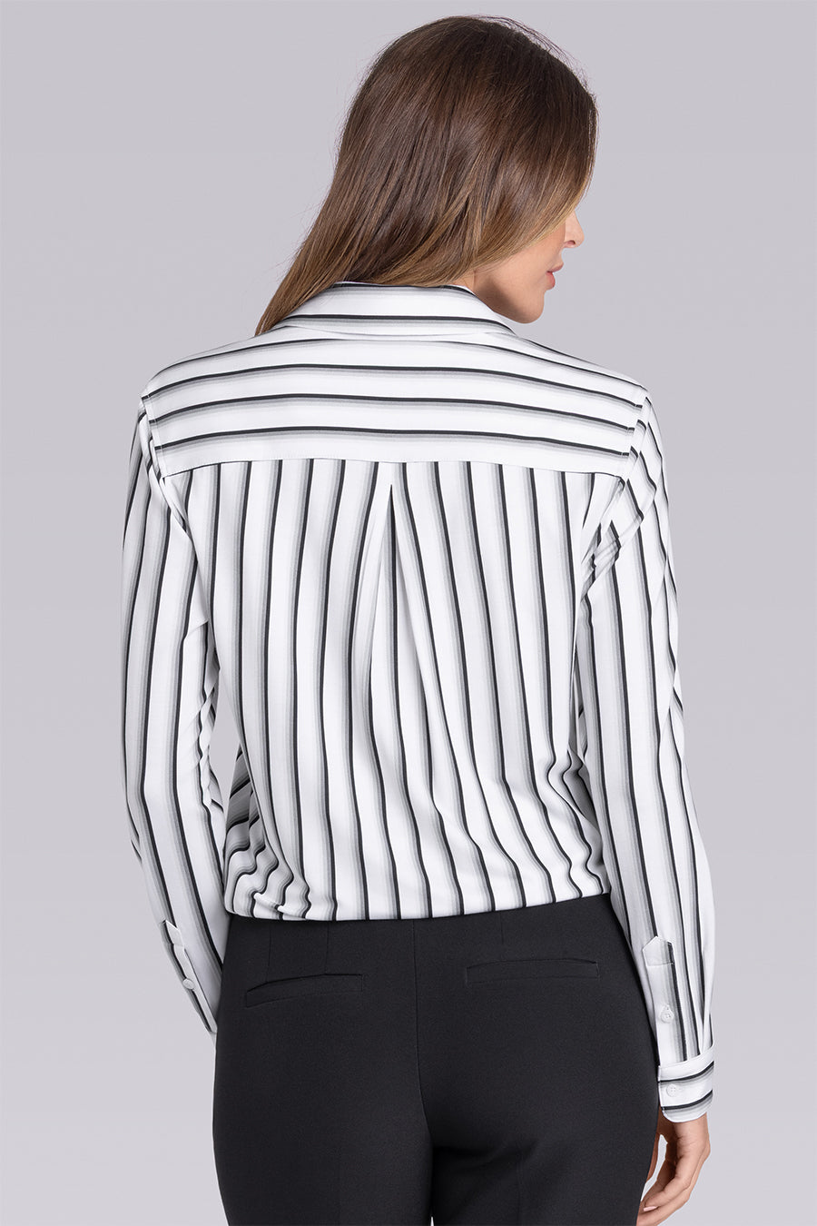 • Gradient Striped Long Sleeve Button-Up V-Neck Shirt in Icy Bamboo
