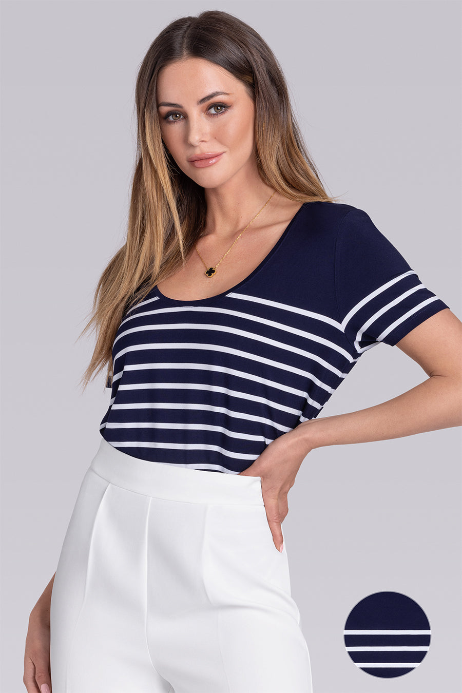 • Solid Scoop Neck Short Sleeve T-shirt in Icy Bamboo