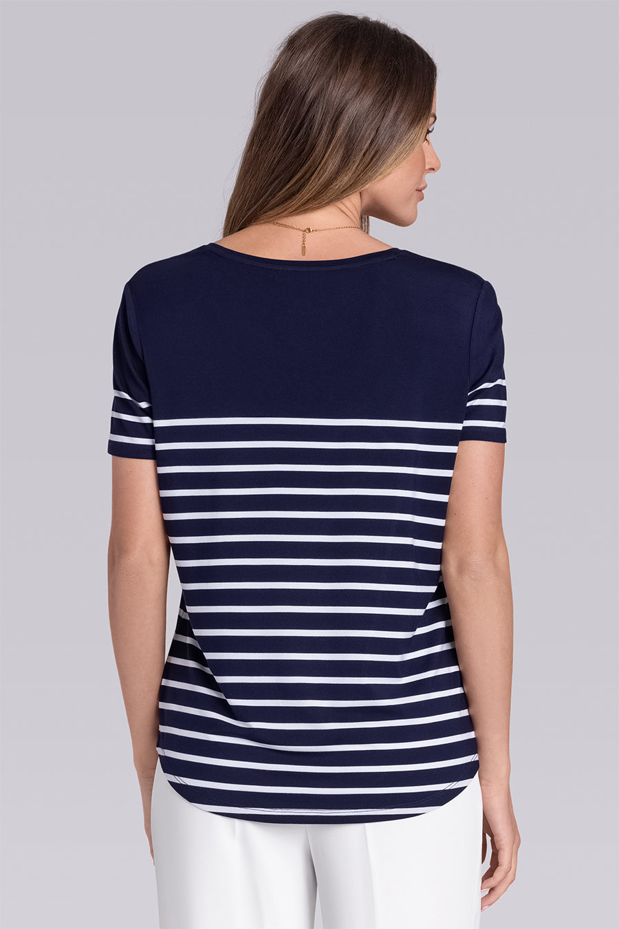 I love this top. It travels well. So comfortable and cool during this hot summer. I also bought the dress with the same pattern and I love it too!