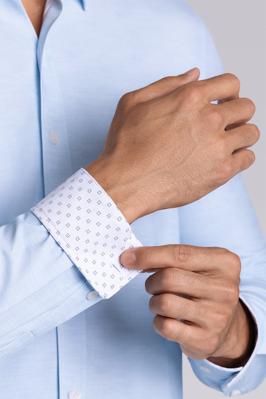 • Contrast Print Inside the Collar Stand and Cuff with Geometric Print  in White & Navy Color