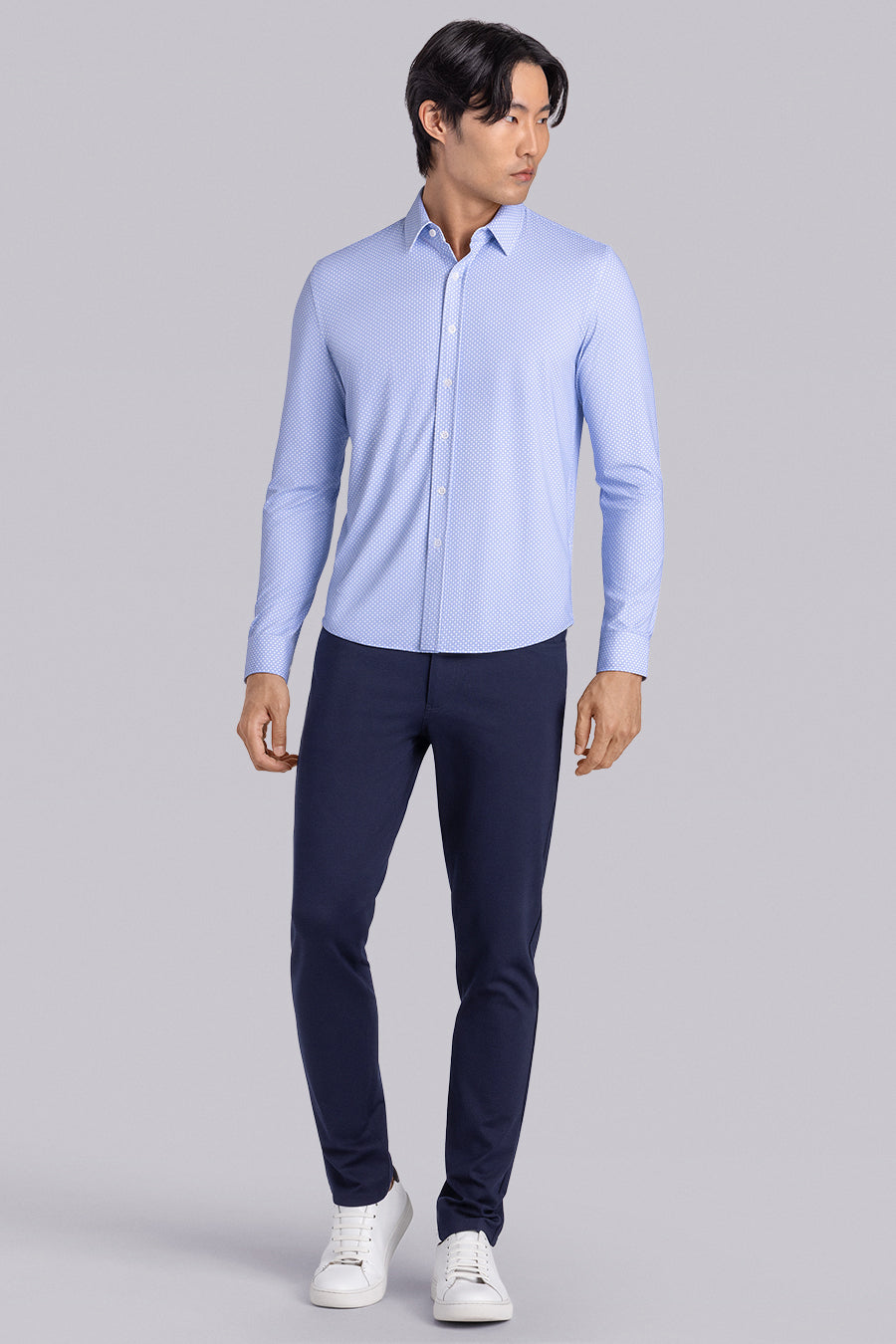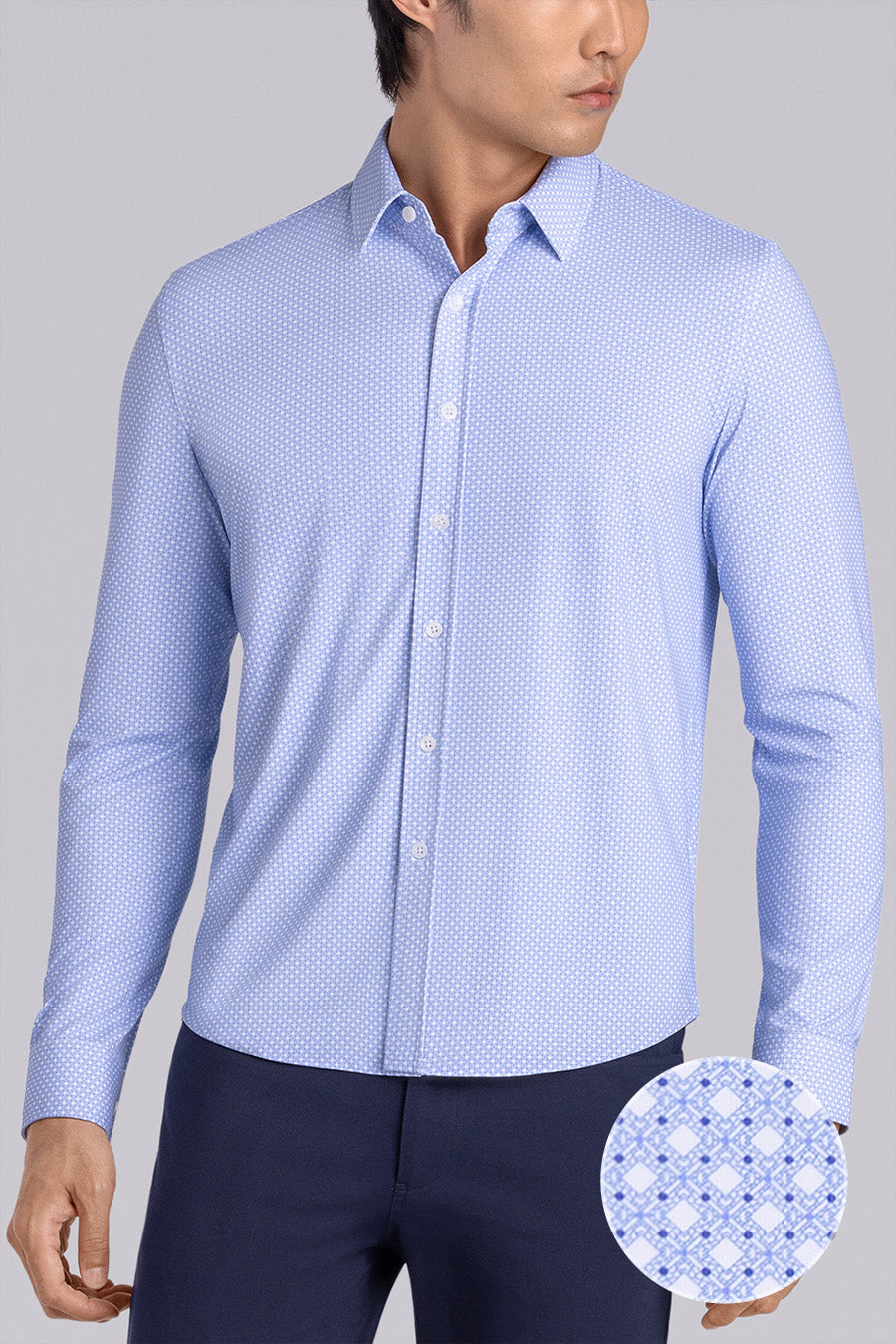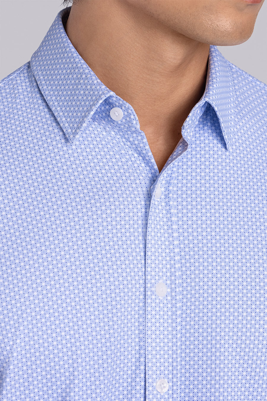 • Contrast Print Inside the Collar Stand and Cuff with Twill Texture in Light Blue