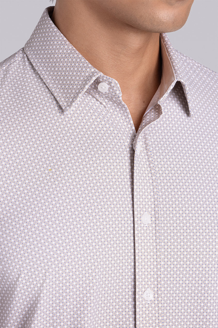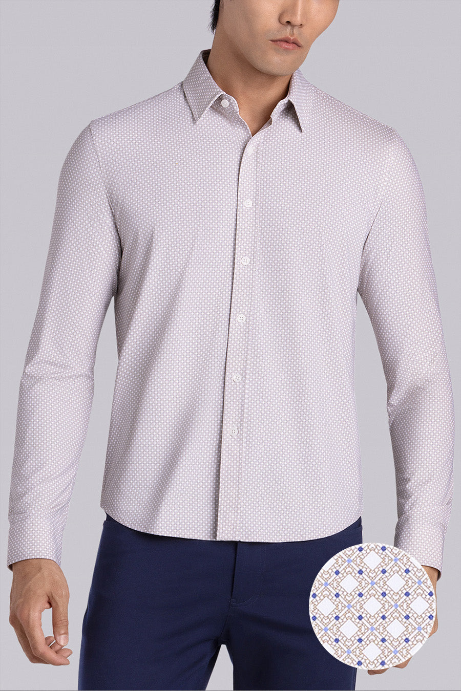 • Contrast Print Inside the Collar Stand and Cuff with Twill Texture in Sand Color