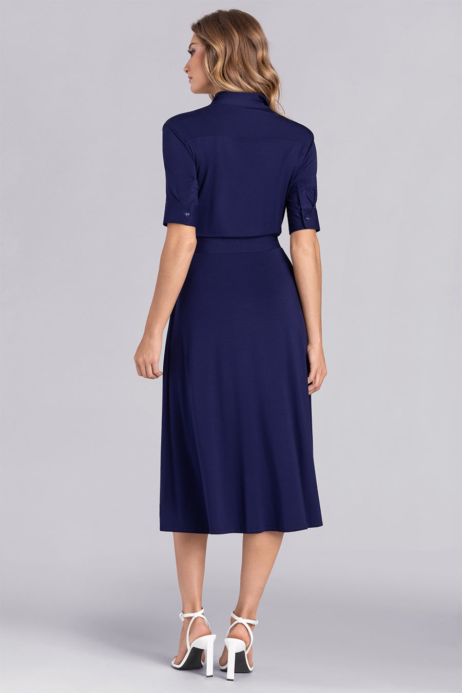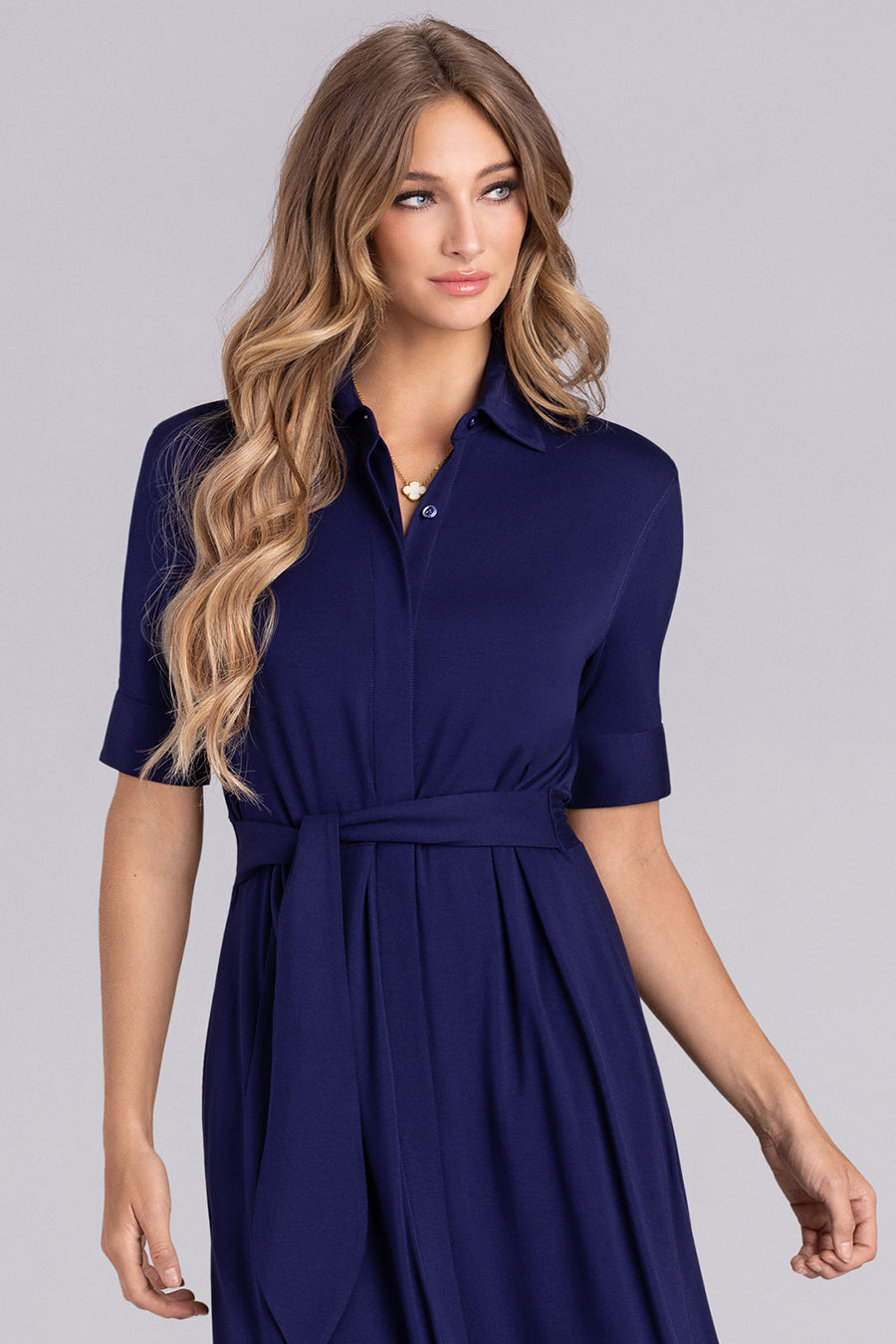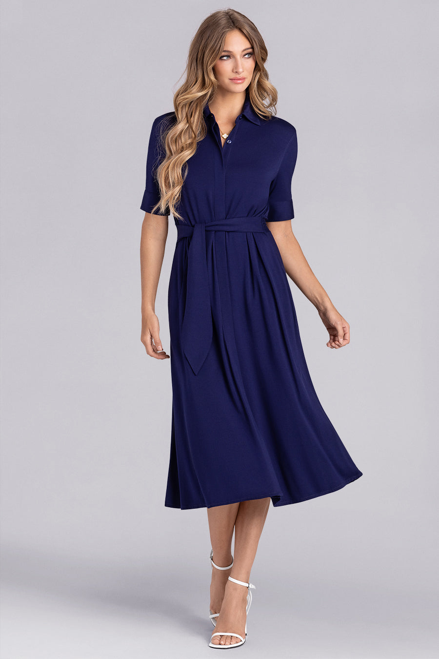 • Solid Belted Shirt Dress with Short Sleeve in Icy Bamboo