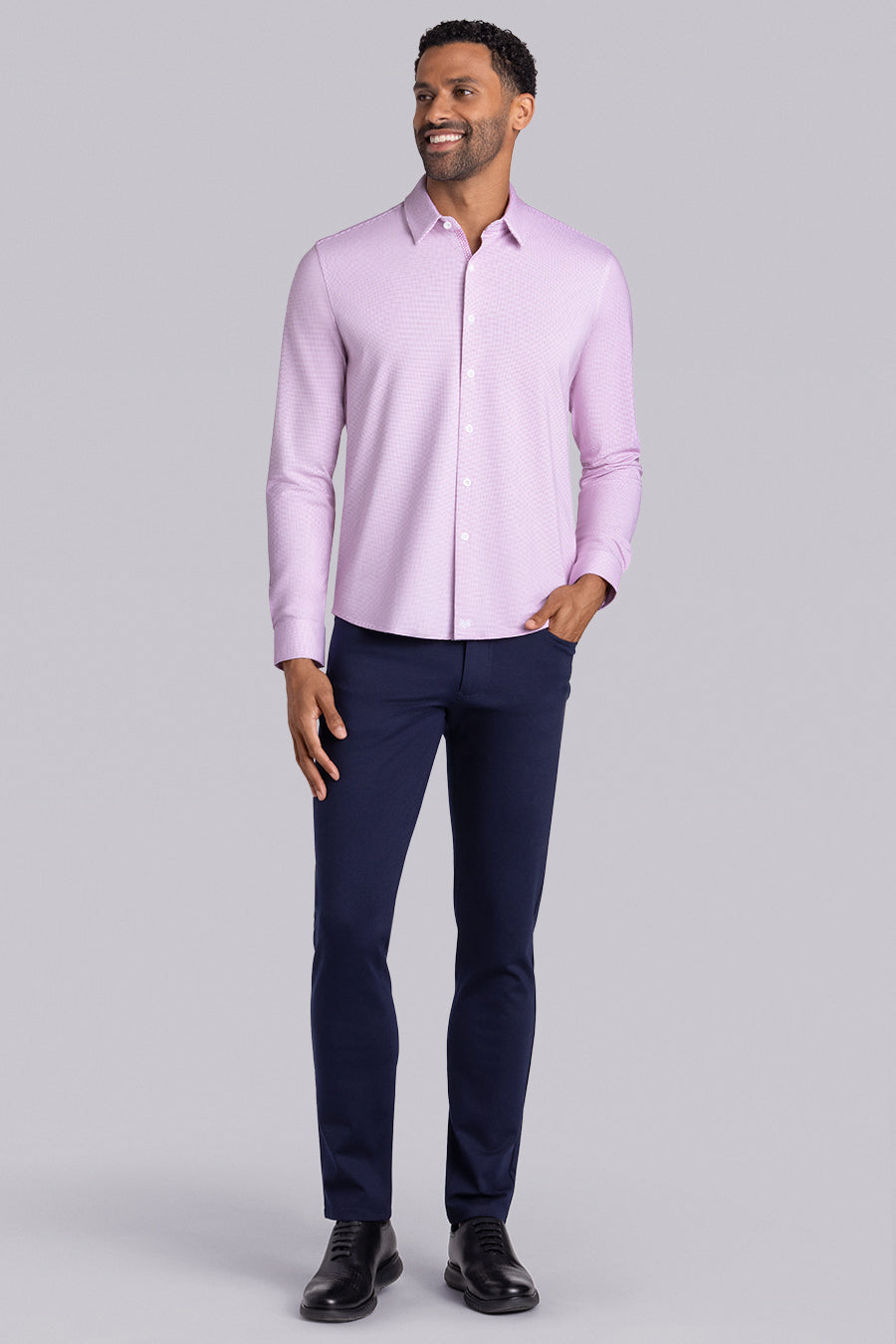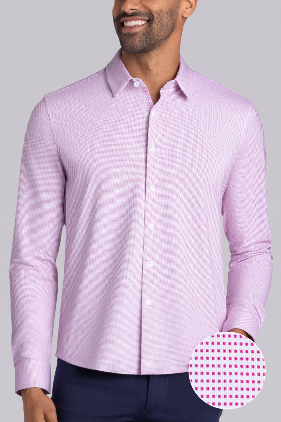 • Contrast print inside the Collar Stand, Cuff, and Front Placket with small geometric print in Light Magenta.